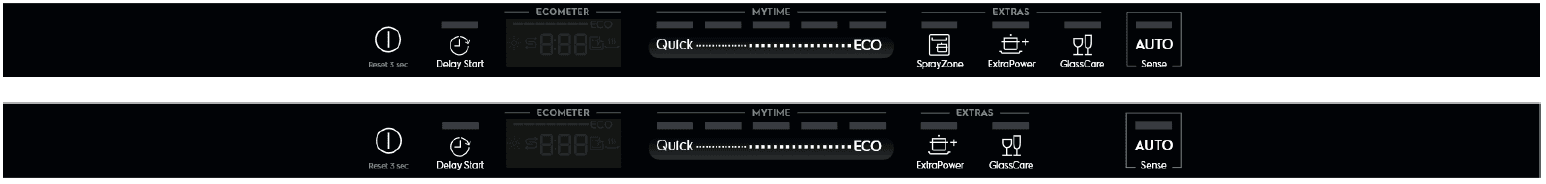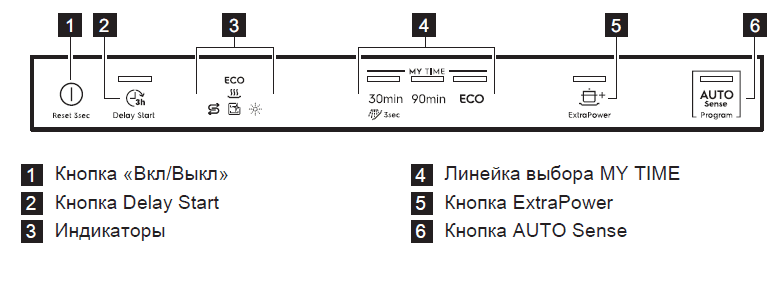ПРИМЕЧАНИЕ: Способ может отличаться, в зависимости от типа панели управления посудомоечной машины. Если панель управления отличается от приведенного ниже рисунка, см. руководство пользователя, поставляемое в комплекте с прибором.