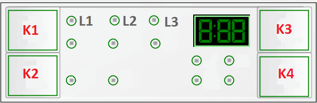 2. Для входа в пользовательский режим одновременно нажмите и удерживайте кнопки К3 и К4, пока индикаторы L1, L2 и L3 не начнут мигать, а дисплей не погаснет.