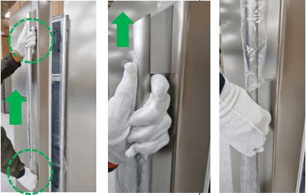 ШАГ 1 Крепко удерживая опоры дверной ручки, потяните вверх с защелкой.