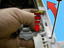 Чтобы снова собрать блокировку дверцы, повторите те же действия в обратном порядке.