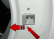 Вдавите штифт внизу внутрь и одновременно переместите предохранительное устройство двери влево.