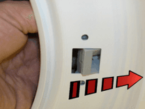 Вставив дверное устройство в гнездо, убедитесь, что фланец правильно расположен снаружи, как показано стрелками.