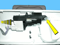 Удалите два боковых винта, которыми передняя панель крепится к впускному отверстию.