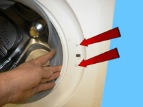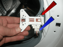Открутите два винта, которыми блокировка дверцы крепится к передней панели.