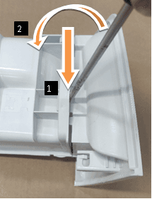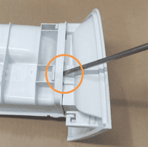 4. Чтобы снять ящик с ручки, поместите отвертку с плоской головкой в область, где расположен зажим.