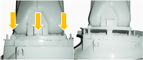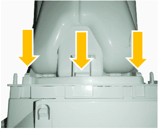 Снимите ручку, нажав на три фиксатора, и отсоедините ручку, как показано на рисунке.