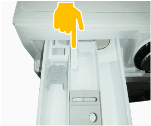Откройте кювету для моющих средств. Защелка (обозначенная названием «PUSH») будет видна с левой стороны.