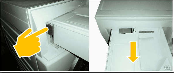 Откройте кювету для моющих средств. Защелка (обозначенная названием «PUSH») будет видна с левой стороны.