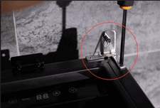 Осторожно прикрепите стеклянную дверцу и нижнюю петлю и закрепите винтами.
