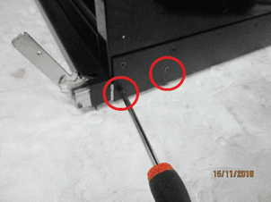 3) Откручиваем 2 винта, фиксирующие петлю двери
