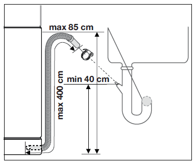 - Впускное отверстие сливного шланга должно располагаться на расстоянии от 40 до 85 см.