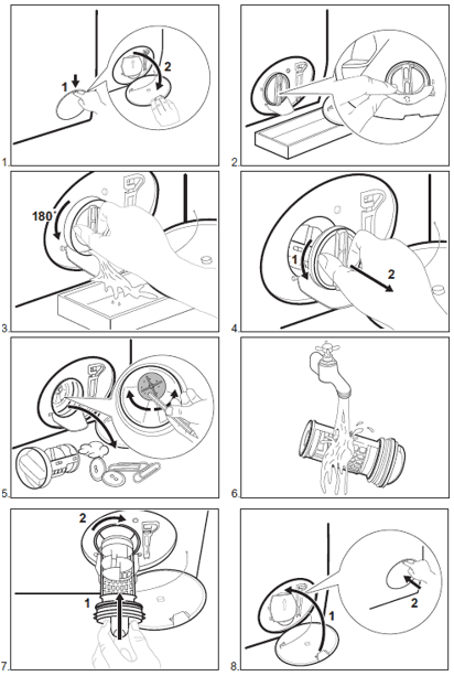 Очистите насос и фильтр для ворса, включая лопасть насоса (если видна лопасть насоса, поверните ее карандашом и установите фильтр на место). Запустите стирку в горячей воде без добавления средства для стирки, чтобы прочистить систему слива. Для получения подробного описания процедуры см. руководство пользователя, поставляемое в комплекте с прибором. Руководство пользователя можно скачать здесь.