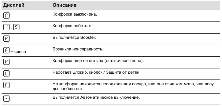 Если конфорка остыла, вероятно, появление этого символа указывает на неисправность датчика.