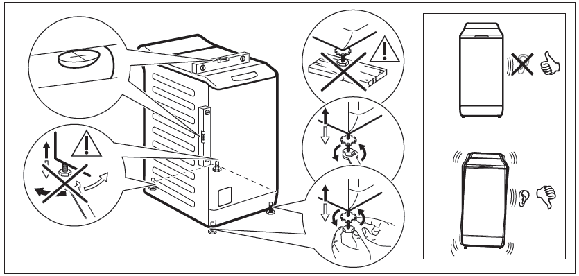 - Нельзя выровнять стиральную машину с вертикальной загрузкой