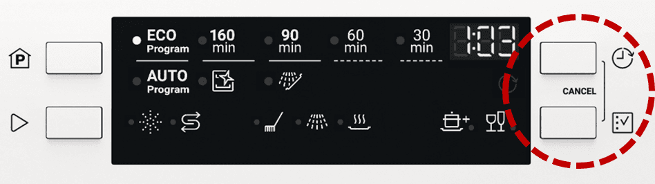 Чтобы отменить программу, прочтите раздел об отмене программ в руководстве пользователя посудомоечной машины.