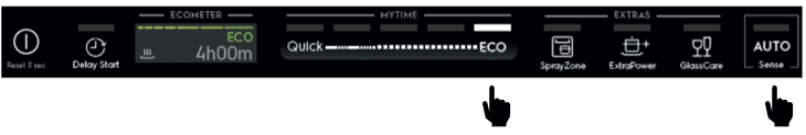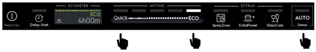 Если ваша посудомоечная машина оснащена Wi-Fi Отключите демонстрационную функцию: Здесь необходимо сначала нажать кнопку «Quick» , а затем нажать и удерживать ECO + Auto в течение 5 секунд . На дисплее в течение 3 секунд отображается «d: OF». После выключения демонстрационного режима машина снова будет работать нормально. Демо-функция активируется таким же образом.