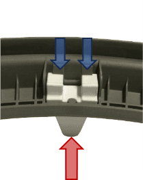 Щоб зняти важіль дверного мікроперемикача, натисніть на два кріпильні затискачі. Натискайте на важіль, поки не знімете його повністю.