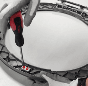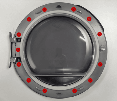 2. Послабте 13 гвинтів по периметру, які кріплять внутрішню дверну раму. Обережно відкрийте дверцята, натиснувши на скляний елемент.