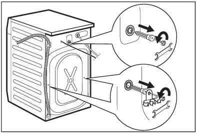 1. Убедитесь, что транспортировочные болты удалены с задней стороны устройства.