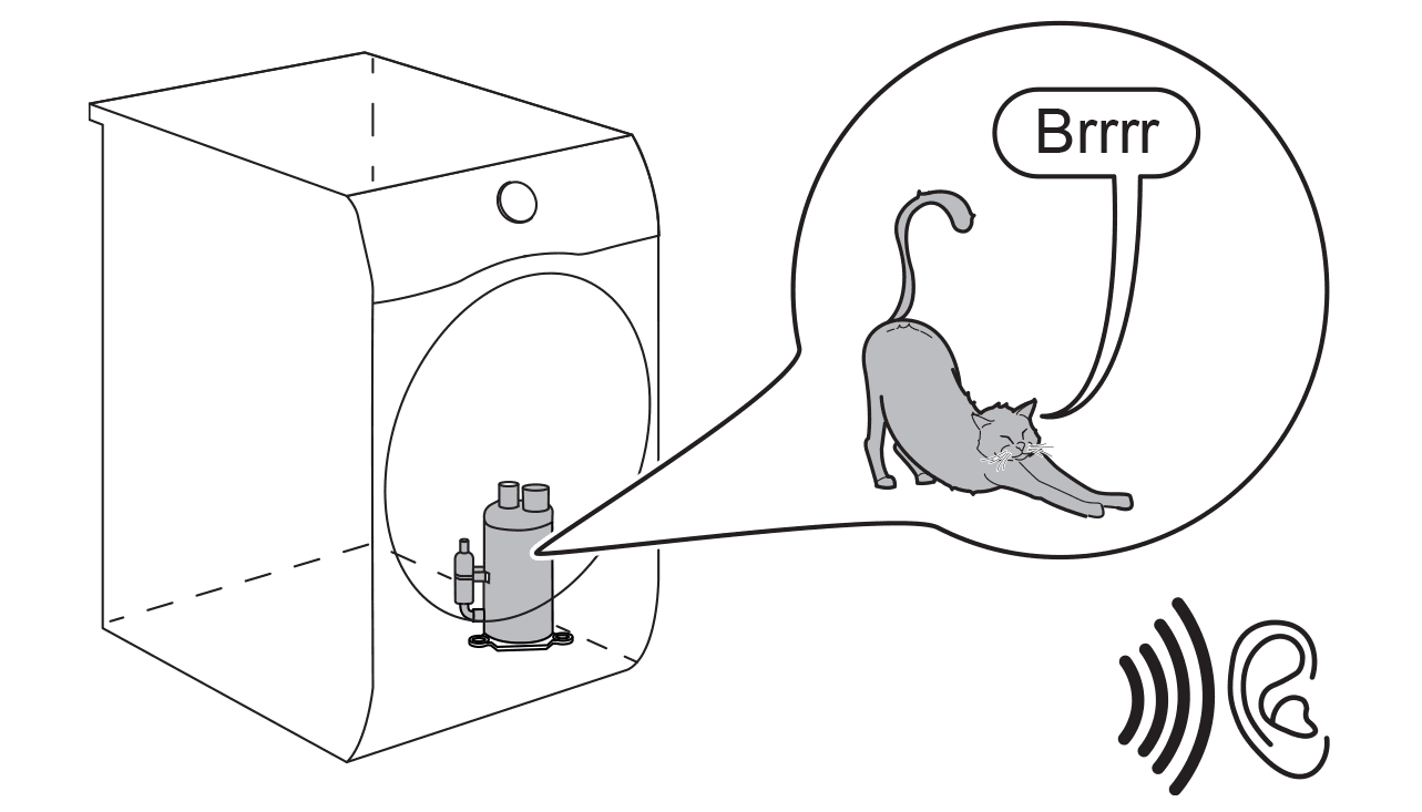 В начале цикла сушки (первые 3-5 минут) уровень шума может быть немного выше. Это связано с запуском компрессора. Это нормально для приборов с компрессорным питанием, таких как холодильники и морозильники.