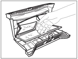Очистите фильтр, удалите с него ворсинки и промойте фильтр под краном с горячей водой. Очистите фильтры кончиками пальцев.