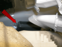 Якщо затискач був знятий, поставте його на місце (показано стрілкою)