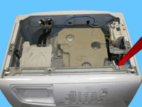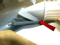 Акуратно вставте частину відділення ящика, позначену стрілкою, у вхідну кишеню миючого засобу ущільнення сильфона.