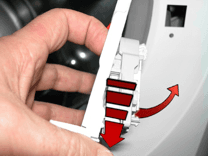 Як тільки ущільнення сильфона дверей буде знято зі свого місця в шафі. Вийміть кишеню зі складу відсіку для ящиків.