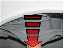 Акуратно вставте частину відділення шухляди, позначену стрілкою, у кишеню ущільнення сильфона.