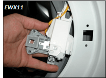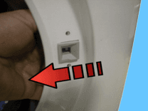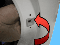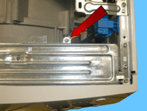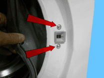 Відкрутіть два гвинти, що кріплять запобіжник дверей до передньої панелі.