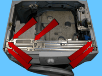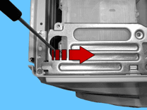 Відкрутіть два гвинти, що фіксують передню панель з боків (позначено стрілками).