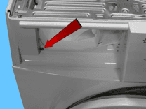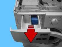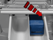 Витягніть шухляду для миючого засобу та одночасно натисніть праву сторону, позначену стрілкою.