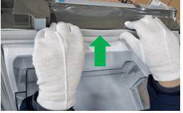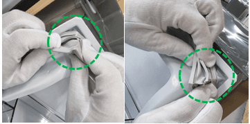 КРОК 1 Витягніть прокладку з 4 кутів. (Почніть з кута.)