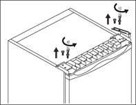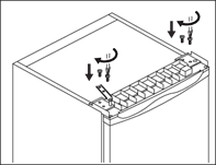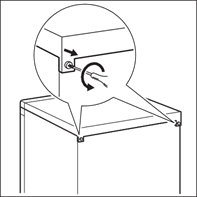 14. Встановіть верхній шарнір на протилежній стороні приладу. Встановіть верхній шарнірний штифт у верхній отвір дверцят. Затягніть гвинти.
