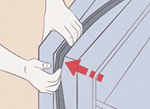 1. Поместите большой палец под уплотнение, лучший способ - начать с угла. Возьмитесь за нижнюю часть сбоку и потяните прокладку назад.