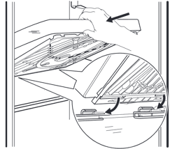 5. Поместите полку с зажимами внутрь холодильника. Надавите на полку, пока зажимы не зафиксируются внутри отсека.