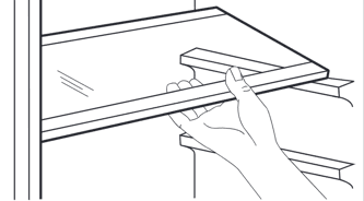 Чтобы поставить стеклянную полку на место, выполните указанные выше действия в обратном порядке.